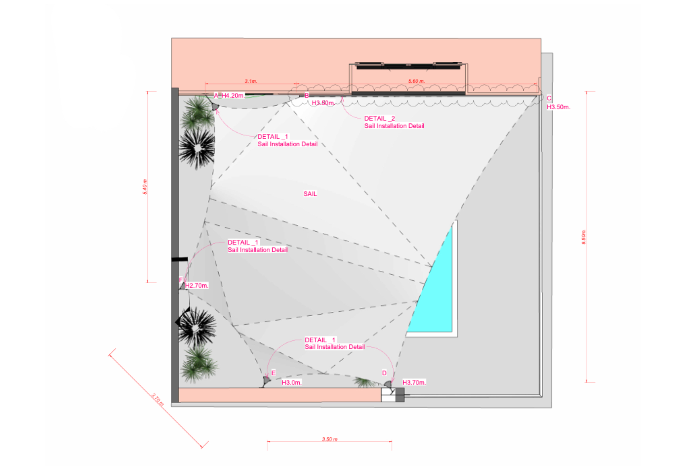 Following an in-depth site inspection, our designers create a highly accurate 3D model of your installation environment. This allows us to assess structural elements, mounting points and spatial considerations with precision, ensuring every aspect of the design is both practical and well-engineered. Your selected shade solution is then fully integrated into the model, providing a clear and realistic visualisation prior to approval.